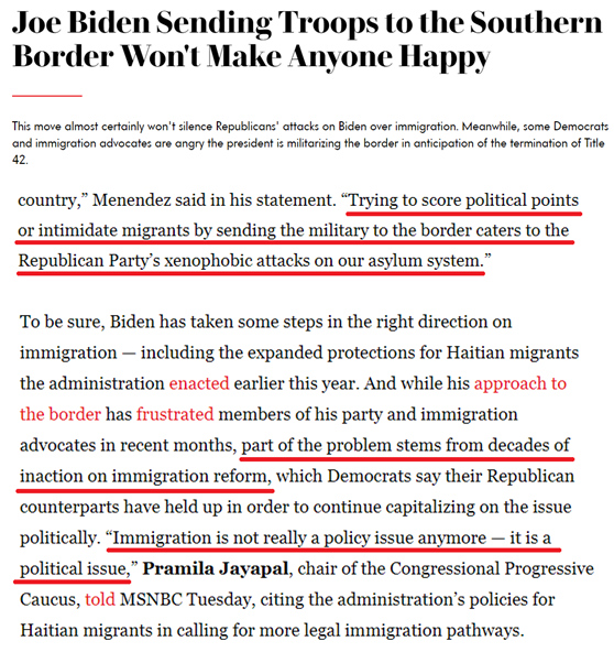 拜登政府的派兵决定不仅给了共和党人攻击的口实,也让一些民主党人和移民倡导者大为不满。