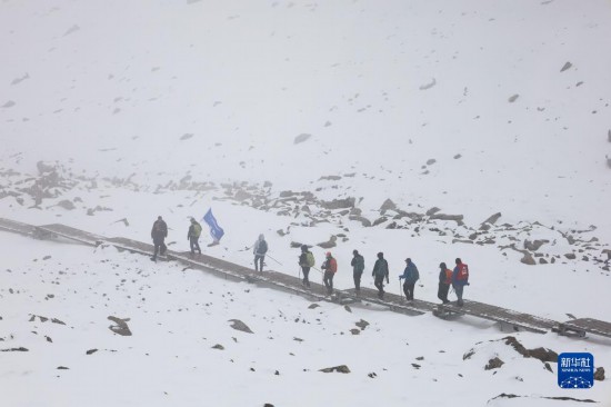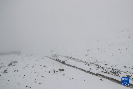 5月9日,来自深圳的游客在巴尔斯雪山景区留影。