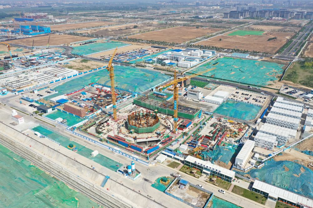位于雄安新区启动区的中国中化雄安总部001大厦项目现场(2023年5月9日摄,无人机照片)。新华社记者 朱旭东 摄