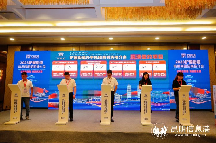 昆明信息港讯 记者李红鸾 5月11日,以“护国新势能,商融新发展”为主题的2023年护国街道南屏商圈招商推介会在金鹰广场酒店举行,近200家企业齐聚护国,共同探寻发展在护国的新商机,共同擘画营商在护国的新蓝图。