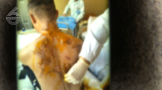事情发生后,陈先生被送到了医院,背上拔火罐烧伤的地方呈现出圆形的水泡,因酒精泼洒烧伤的面积也很大,身上布满的大小水泡,让陈先生疼得彻夜难眠。