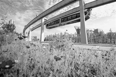 左图 5月9日拍摄的武汉“光谷光子号”空轨列车。新华社记者 肖艺九摄