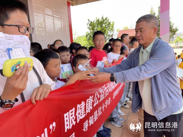 昆明信息港讯 5月9日,中国红十字基金会、寻甸县教育体育局、寻甸县红十字会发起,昆明爱尔眼科医院负责医疗技术支持的云南“红十字爱眼护眼工程—乡村少年亮眼计划”公益项目走进寻甸县倘甸镇马街完小,为前期检查出患有屈光不正且需要配镜的300余名学生送上了公益眼镜。