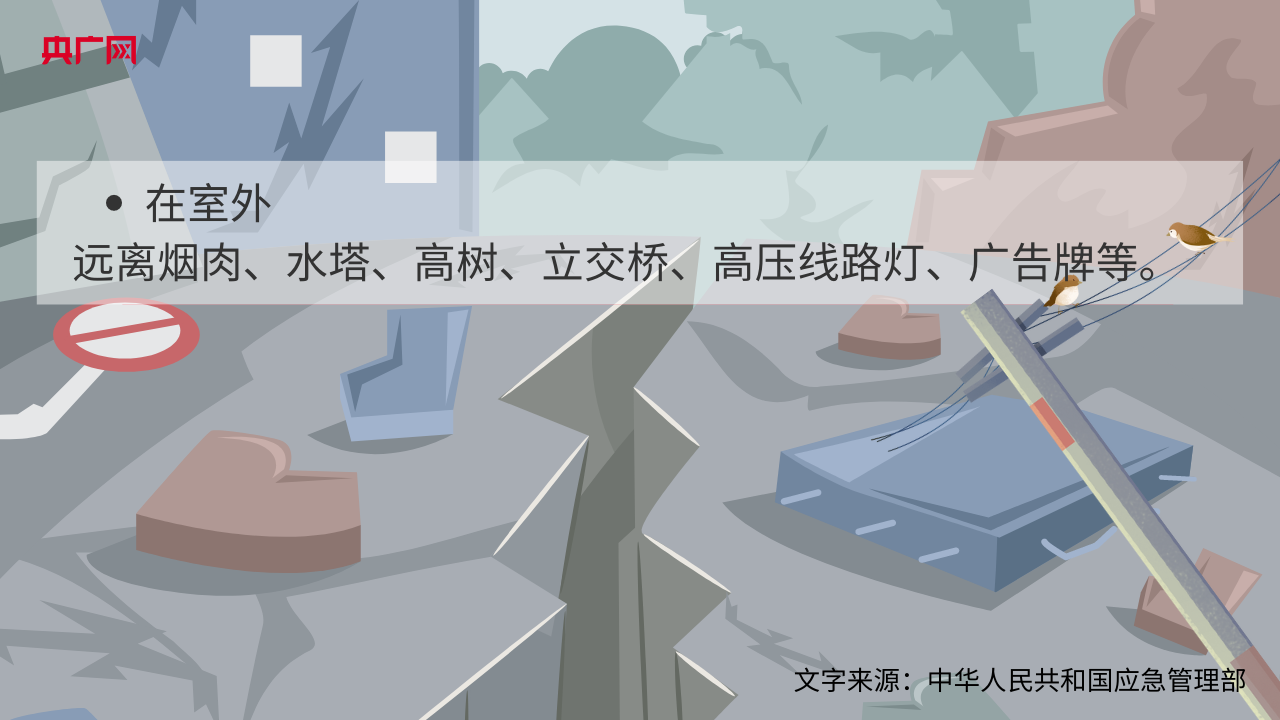 地震篇:如遇地震,在室内、室外或被困废墟时应如何做?