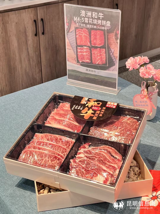 盒马采购何小青介绍,盒马的上百款烧烤商品大致分为三类:澳洲直采进口的高端M级和牛、安格斯牛肉;来自山东淄博、湖北大别山、宁夏等地的特色牛羊肉;针对云南本地口味打造的包浆豆腐、把把烧、火盆烧烤等。