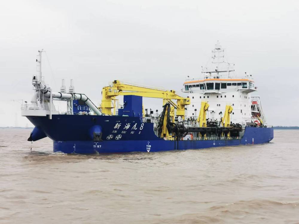 每年5月,长江口深水航道进入洪淤季节,上游来沙量明显增多,给“黄金水道”安全通行和上海国际航运中心正常运营带来影响。作为我国自主研发的大型耙吸式挖泥船,“新海虎8”轮总长130.3米、型宽25.6米、型深9.2米,采用了国内最大的泥泵变频驱动器、自动疏浚系统等先进装备,是长江口当之无愧的“疏浚猛虎”。