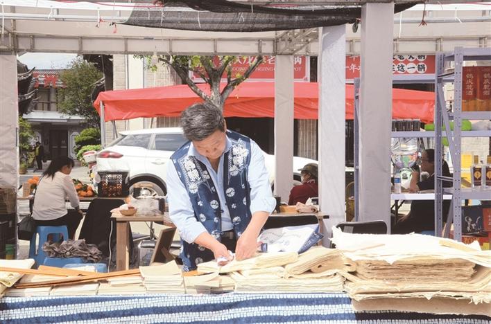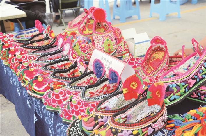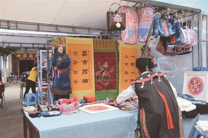 ◀ 南国城(密湾)分会场非遗特色集市里的彝族刺绣。
