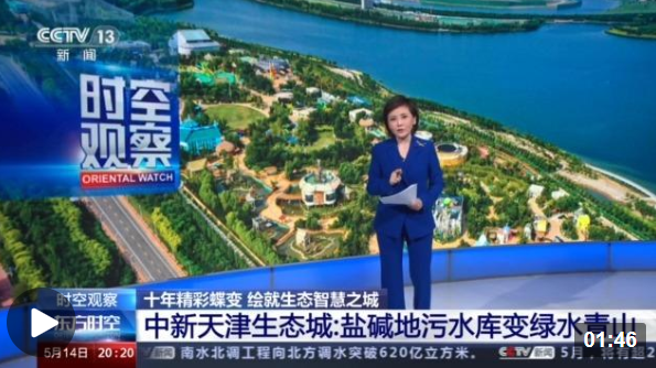 中新天津生态城建设局副局长 付鹏:43公里长的水系全部连通后。将围绕在生态城已经建设完成的40多座各色主题鲜明的城市公园和社区公园周边,打造更好的自然基底,使水系与景观,和人民的生活浑然天成。