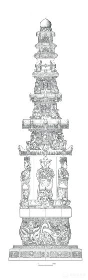 2012至2013年,昆明市博物馆邀请成都市文物考古研究院卢引科先生对经幢进行了考古测量和绘图,共绘制考古线图90幅。此次绘制的考古线图,全面展示了经幢的内部榫卯结构和主题雕刻风格,也更清晰地呈现了众多造像的细节,从而便利于对经幢的进一步精深研究。在此次展览上,完整版本的经幢线图将首次公开展出。