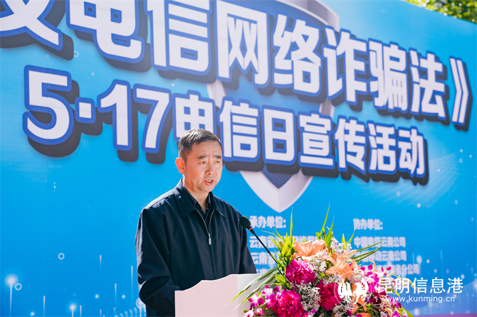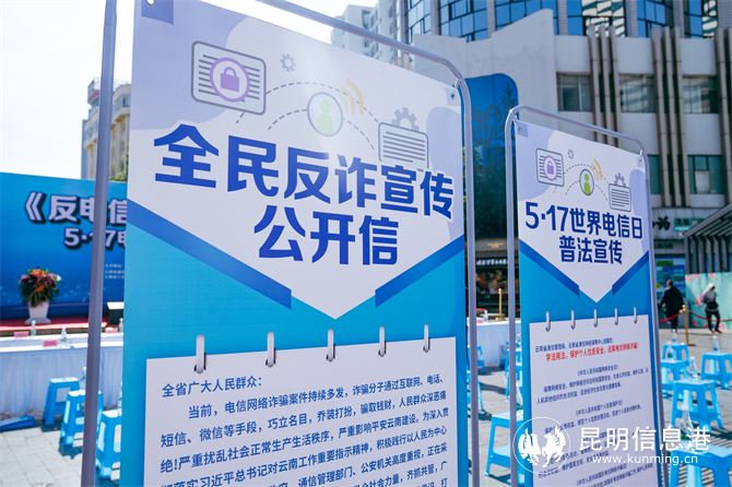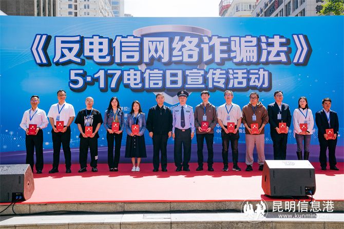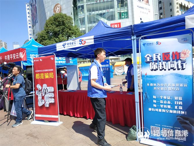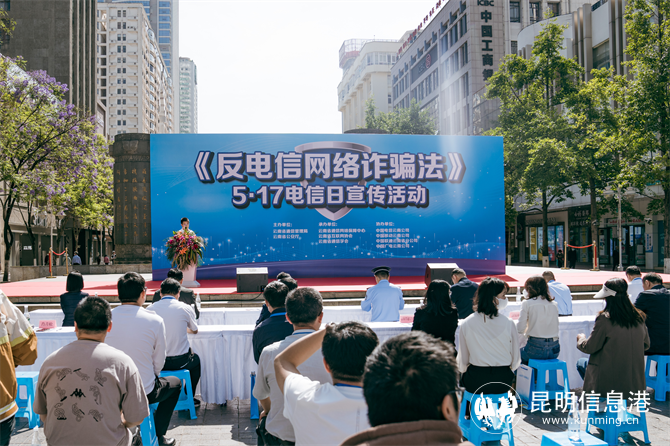 昆明信息港讯 记者江枫 5月17日,《反电信网络诈骗法》5·17电信日宣传活动在昆明南屏街举行。活动由云南省通信管理局、云南省公安厅主办,云南省通信网络保障中心、云南省互联网协会、云南省通信学会承办,中国电信云南公司、中国移动云南公司、中国联通云南省分公司、中国广电云南公司协办。