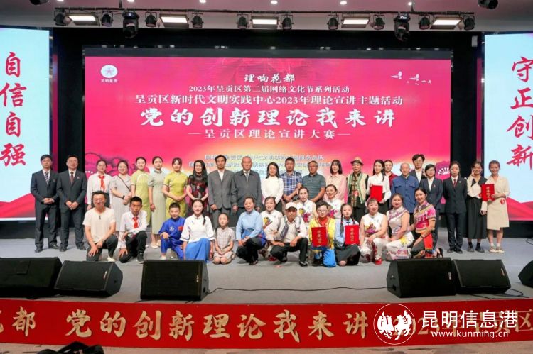 昆明信息港讯 记者段佳琪 通讯员王堇沫 5月17日,2023年呈贡区第二届网络文化节系列活动之“党的创新理论我来讲”理论宣讲大赛复赛在花都斗南火热开赛。24组参赛选手同台竞技,从不同视角,以花样形式,宣讲党的二十大精神,共唱新时代赞歌。