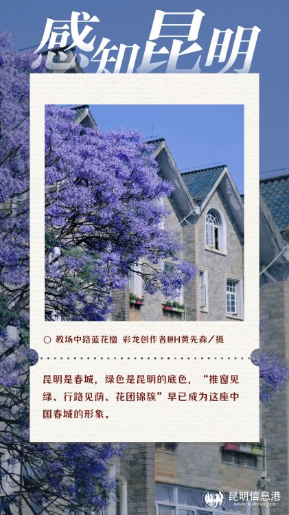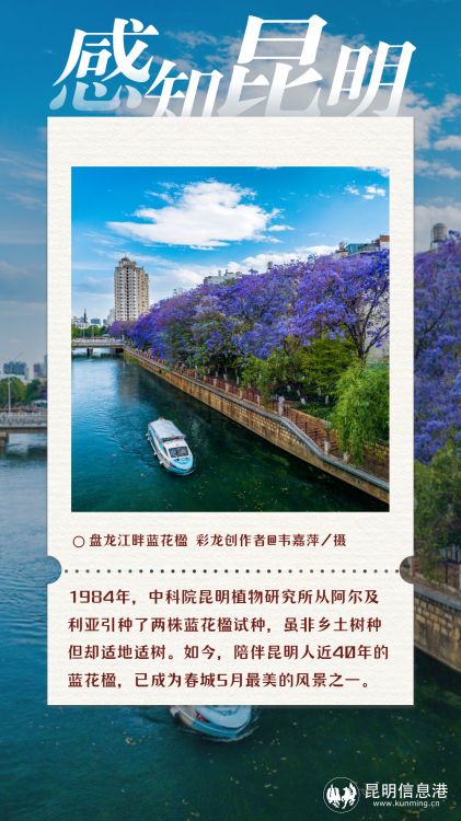 5月,正值蓝花楹盛花期,昆明的大街小巷被蓝花楹覆盖,而这一抹抹“夏日限定”也吸引了无数市民、游客前往打卡,在花海中感受昆明的美好与浪漫。定格春城美景,感知城市美好。由昆明信息港策划推出的“感知昆明”大型融媒体联合展播活动于5月9日正式启动,以蓝花楹为主题开展的首期活动,则将市民、网友们投稿昆明蓝花楹美景,变成了一张张邀请函,邀请全网网友一起感受昆明令人向往的城市美好生活,共同讲述一种叫云南的生活。(昆明信息港评论员 李欣怡)