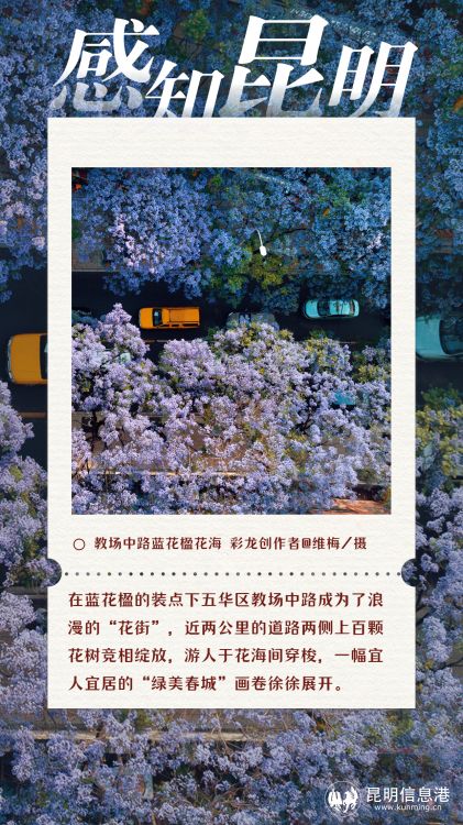 【昆明第二届融媒体网评大赛】央媒点赞春城“花式浪漫” 以蓝花楹为媒讲述昆明的向往生活