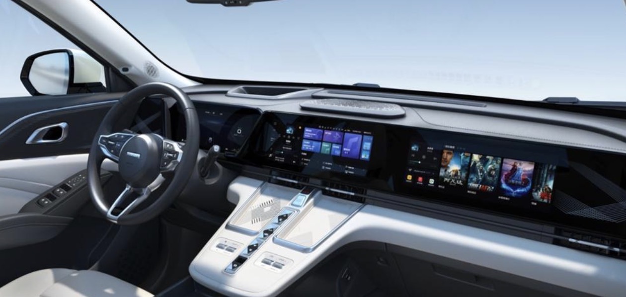 哈弗枭龙MAX搭载全新一代Coffee OS智能座舱系统,三块12.3英寸贯穿超感悬浮大屏,配合主驾10英寸W-HUD抬头显示,以及50W无线快充,满足每位家庭成员所需。