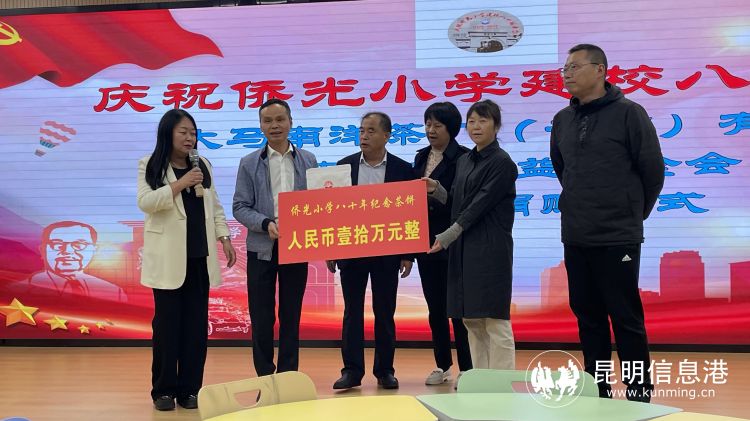 昆明信息港讯 记者孙红亮 5月15日,大马南洋茶厂云南公司通过云南华商公益基金会向昆明侨光小学捐赠了价值10万元的“庆祝侨光小学建校80周年”纪念茶饼。