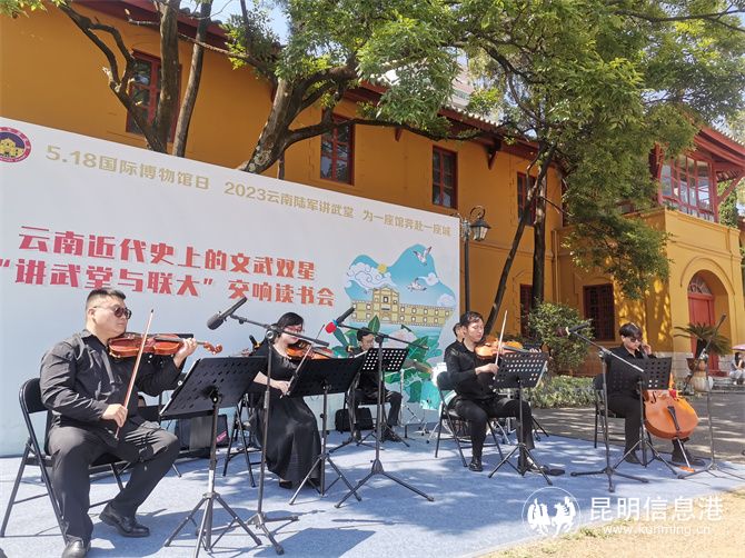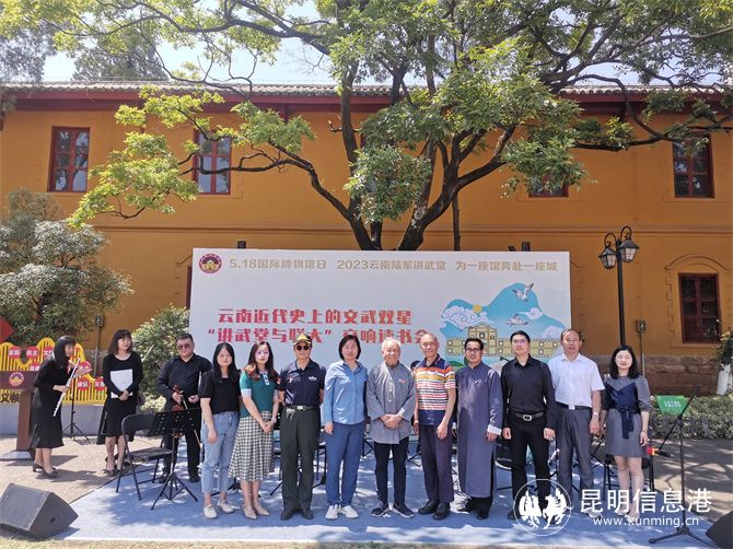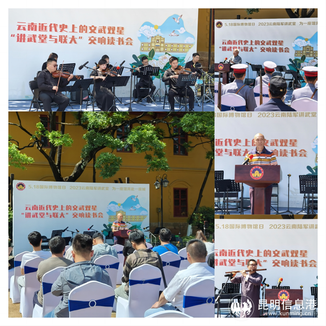 18日上午,“中国近代史上的文武双星——‘讲武堂与联大’交响读书会”在云南陆军讲武堂历史博物馆上演。云南地方史研究者詹霖,西南联大文创中心专家李昆华,分别带来《丰碑百年话英雄——永远的云南陆军讲武堂》和《照片里讲述的西南联大的故事》主题分享。活动现场,不仅有小号演奏慷慨豪迈的《云南陆军讲武堂军歌》,更有长笛演奏薪火相传的《西南联大校歌》。在交响组曲《我和我的祖国》《不忘初心》《我爱你中国》的激情演奏中,交响读书会圆满落幕。