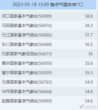 其中,河口县达38.8℃