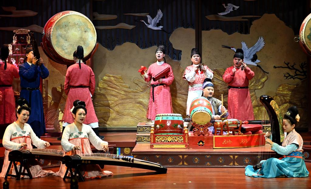 2023年1月24日,西安大唐芙蓉园内上演的舞台剧《鼓》。新华社记者 刘潇 摄