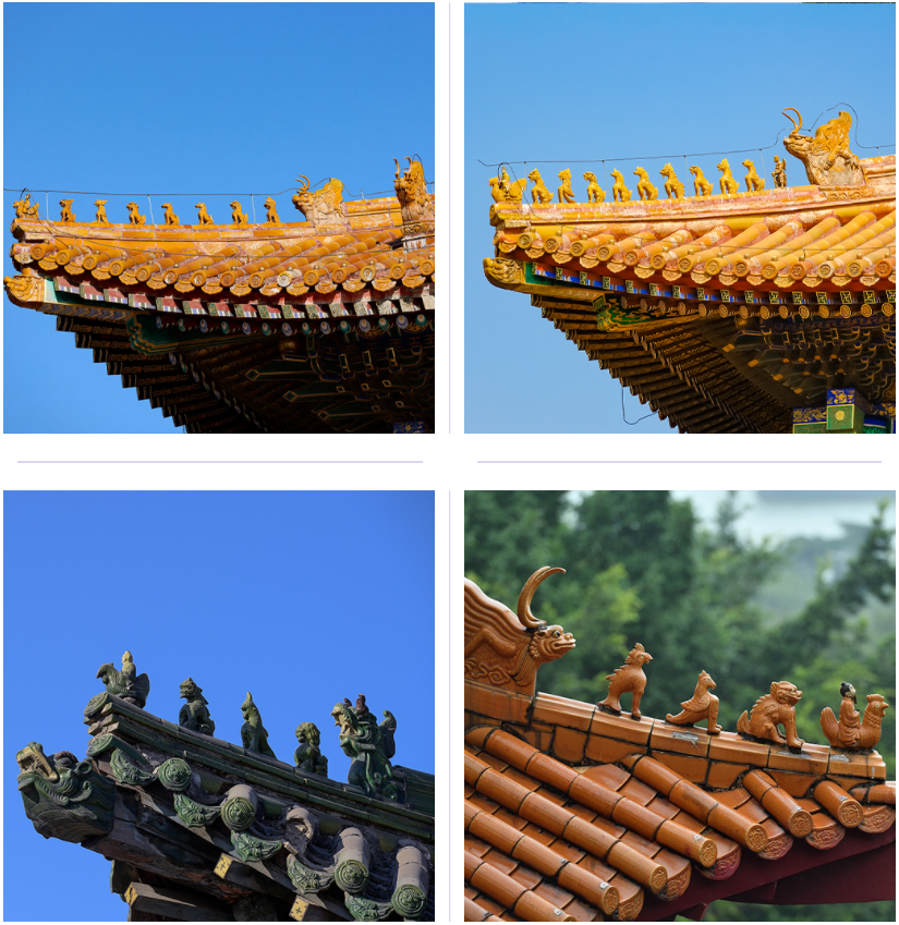 答案是图二。脊兽是中国古代建筑屋顶的屋脊上放置的兽件。建筑规模不同,脊兽的数量也不同,大多为一、三、五、七、九等单数。北京故宫太和殿有十只脊兽,寄托着“十全十美”的美好寓意。