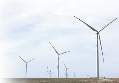 哈萨克斯坦札纳塔斯的100兆瓦风电项目风机。奥斯帕诺夫摄(新华社发)