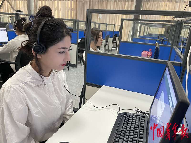 5月18日上午,23岁的苏比努尔·马斯尔江戴着耳麦认真地倾听着昨天致电的录音回放,防止出现纰漏和服务不周到的地方。