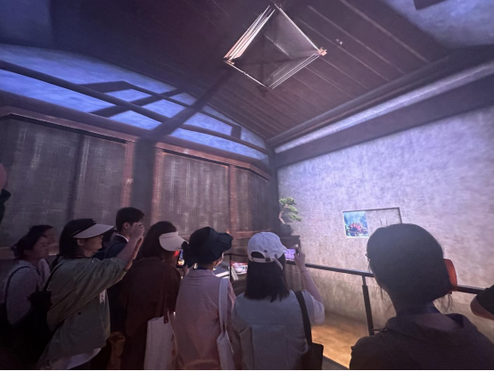 记者跟随游客的脚步进入古民居展厅,感受全息影像的魅力。光与影的梦幻交织,让游客可以全方位地观看展示内容,沉浸式体验“下屋”中的百味人生。
