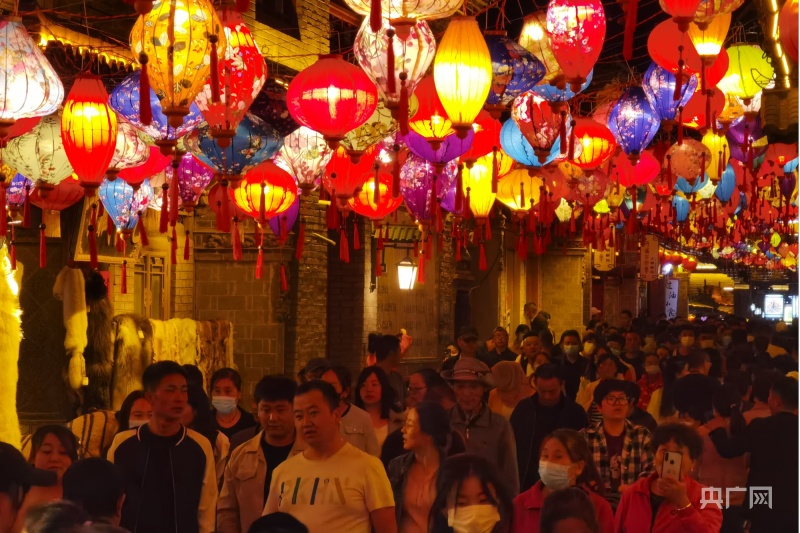 央广网西宁5月20日消息 5月19日晚,在青海省西宁市湟源县的丹噶尔古城内灯光璀璨,人流如潮,众多当地群众和游客聚集到这里,一睹湟源排灯的风采,共游览丹噶尔古城品河湟美味。当晚,“唐蕃古道·日月湟源”2023年湟源县排灯文化旅游节系列活动在这里拉开帷幕。