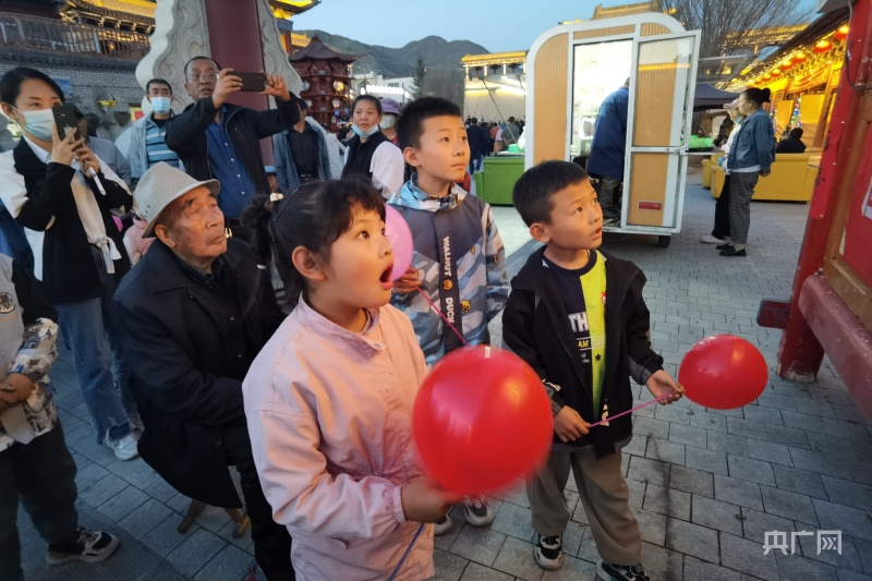 游人们一睹湟源排灯风采(央广网记者 张海东 摄)