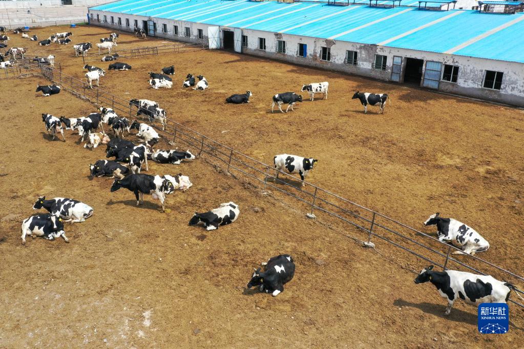 这是在新疆伊宁市巴彦岱镇奶牛养殖场拍摄的饲养的奶牛(5月19日摄,无人机照片)。