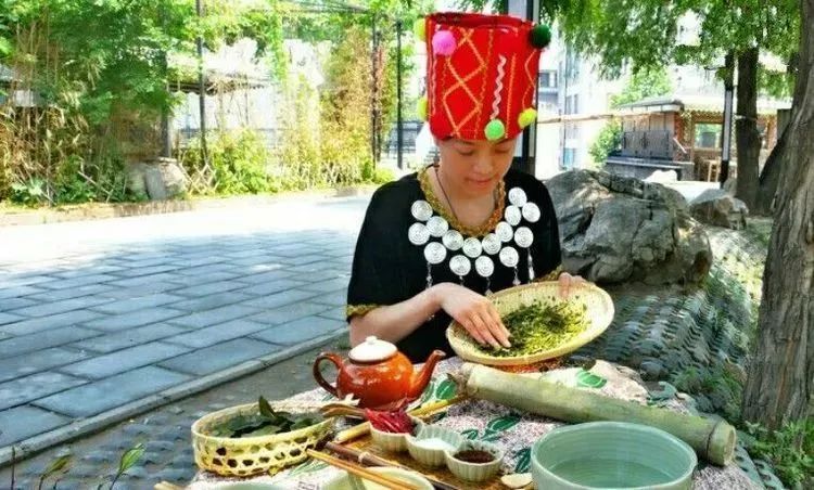 基诺族的“凉拌茶”是一种古老的吃茶方法,也是基诺族最具特色的茶文化遗产之一,被称为“腊攸”。