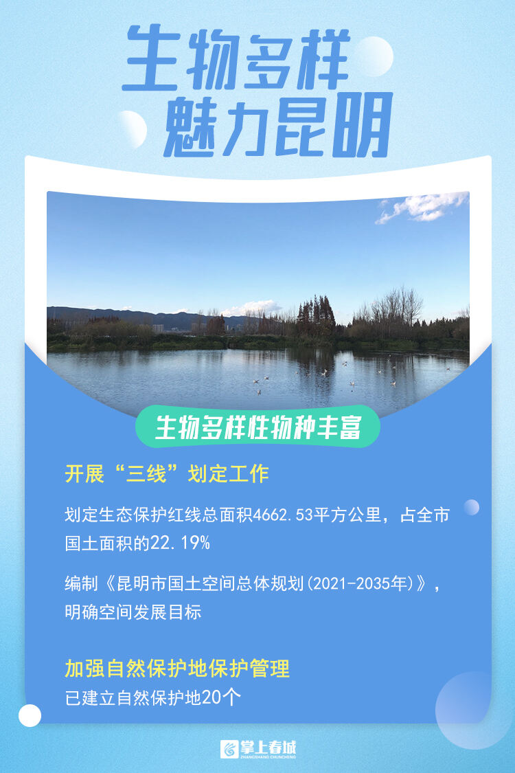 近年来,昆明市高度重视生物多样性保护工作,并做了大量卓有成效的工作。2022年12月,联合国《生物多样性公约》第十五次缔约方大会第二阶段会议(COP15)举行,会上,昆明在全球诸多城市中脱颖而出,入选“生物多样性魅力城市”。
