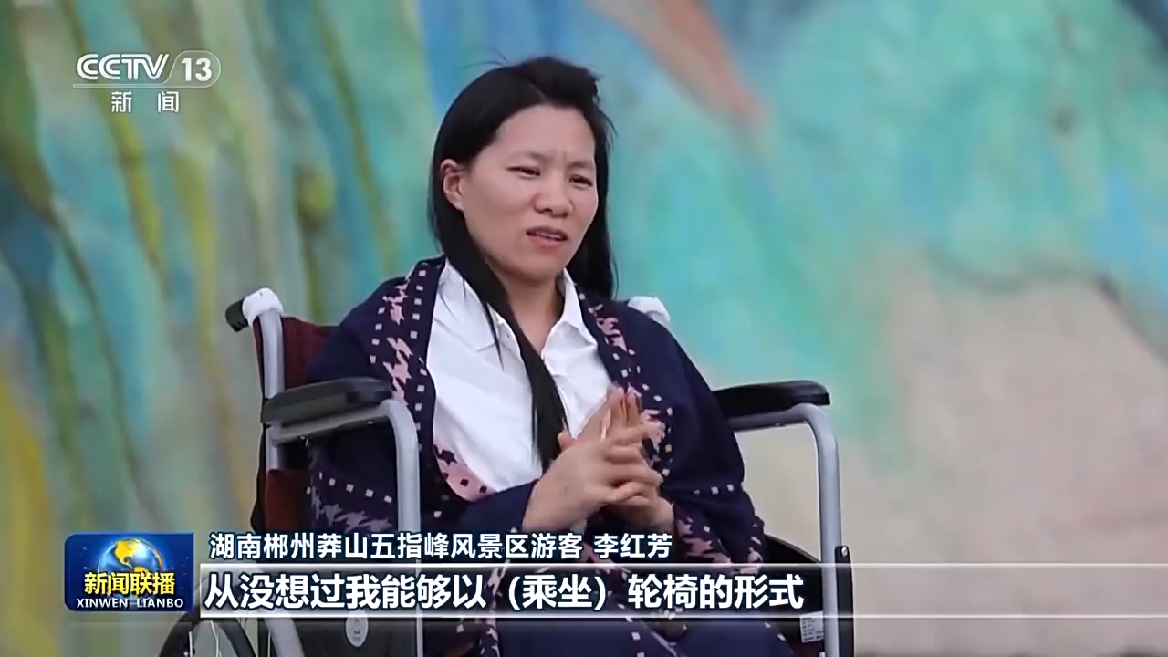 湖南郴州莽山五指峰风景区游客 李红芳:从没想过我能够以乘坐轮椅的形式,爬上这一座高山,有幸能够看到祖国的大好河山,我是非常幸福的。