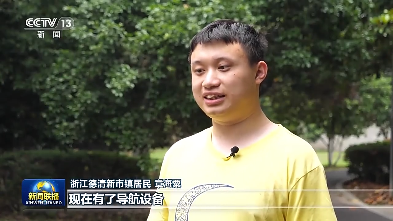 浙江德清新市镇居民 章海粟:以前我们视障人士不太敢出门,现在有了导航设备,就像拥有了一个电子导盲犬一样,可以去到更多的地方,感受春风拂面和鸟语花香,我的世界也可以是五彩斑斓和丰富多彩的。