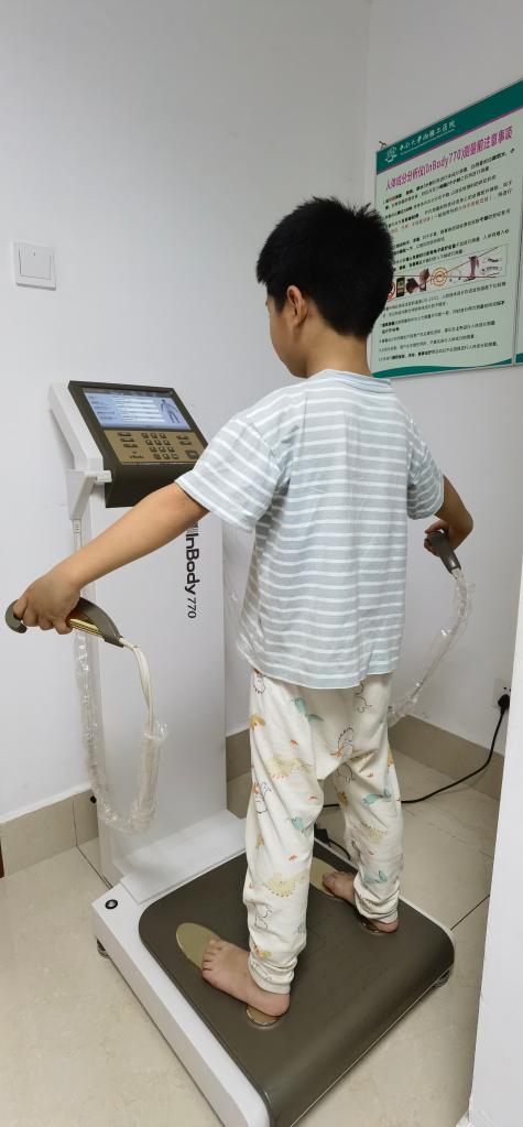 一名小男孩在中南大学湘雅二医院接受人体成分检测分析。(资料图)