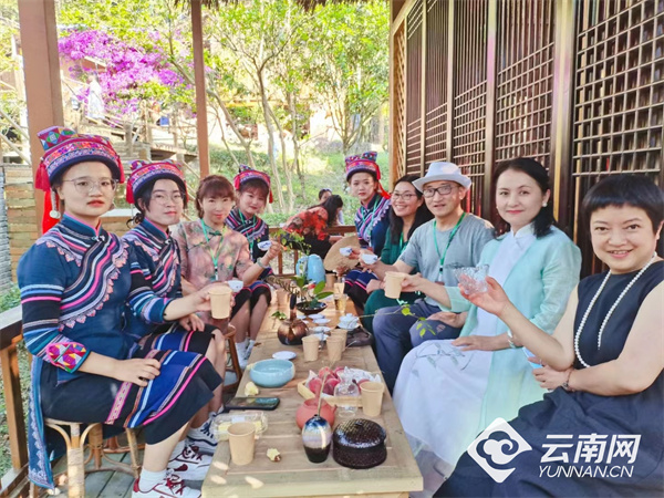 活动的第一阶段举办了“5.21”国际茶日宣传活动。红河州政协副秘书长黄薇霖介绍,红河州一直非常重视茶文化产业的保护发展壮大,先后把蒙自市哈尼水碾茶、元阳县哈尼古树茶申报为州级非物质文化遗产代表性项目,把茶产业作为红河州的支柱产业进行有效培育。目前,红河州已拥有元阳、绿春、金平、屏边、红河、蒙自、建水等7县市72个乡镇的茶叶种植面积39.22万亩、茶叶总产量2.82万吨、产值达 18.69亿元茶叶种植基地,茶叶加工企业75家。在红河州茶产业的发展中,以南部地区为主的茶叶种植不仅助力了全州的脱贫攻坚和乡村振兴工作,也促进了红河州茶产业的不断发展,为红河州的经济建设作出了积极贡献,在建立基地促进当地发展和茶农增收的同时,近20年,红河五里冲茶叶生态公司致力于哈尼族茶文化和哈尼珍稀茶树良种的研发。红河“哈尼水碾茶”等多个茶叶品牌在较高级别的评选中获得较高荣誉,“红河州特种茶专家工作站”“金花茶研发中心”的成立也为茶叶品种的开发奠定了坚实的基础,并结合现代人养生保健需求,研发了茶籽油、茶口服液、茶菜品、茶面膜等,茶文化产业的不断发展,为红河州的经济发展社会进步提供了重要支撑。