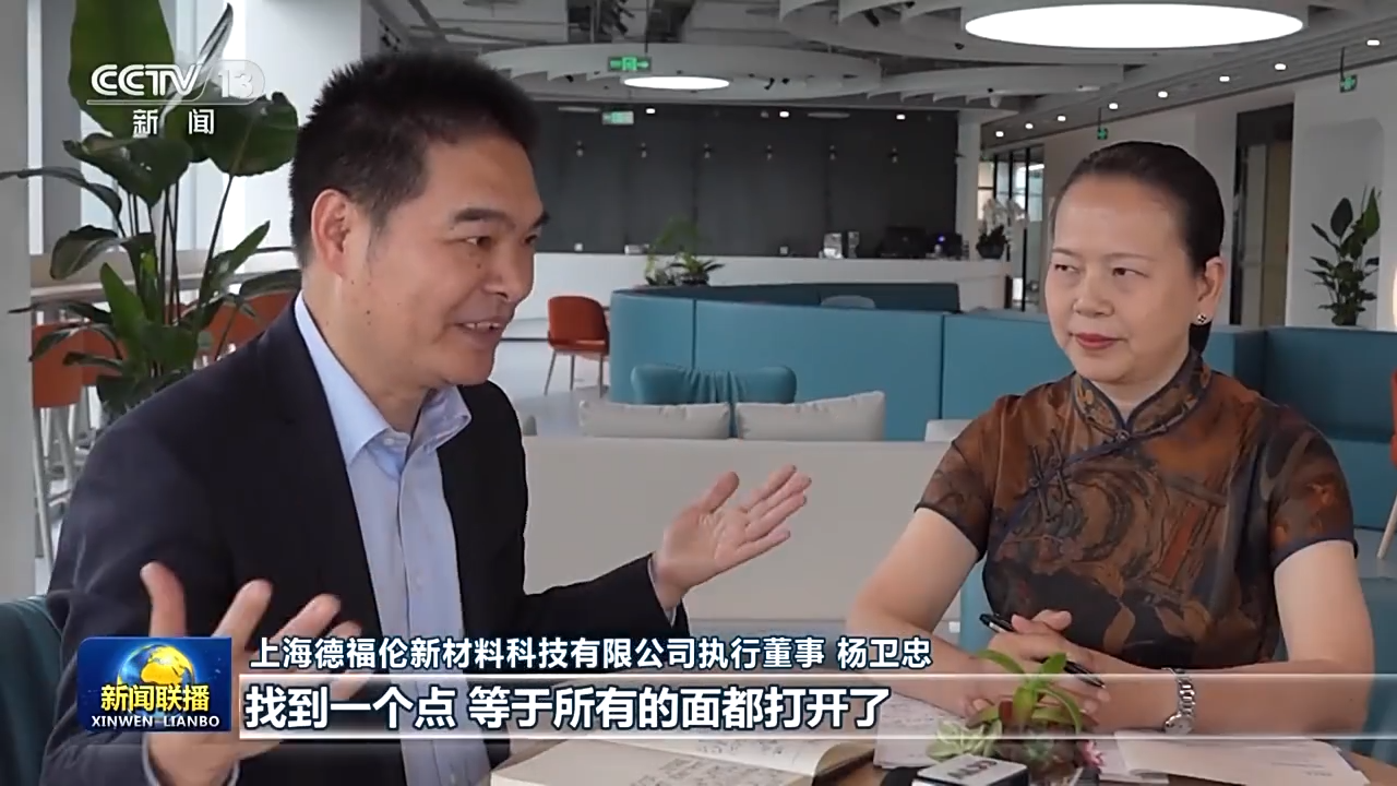 上海德福伦新材料科技有限公司执行董事 杨卫忠:创新资源融到一个点上,一个新兴的产品就出现了。找到一个点,等于所有的面都打开了。