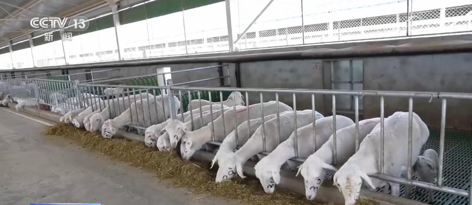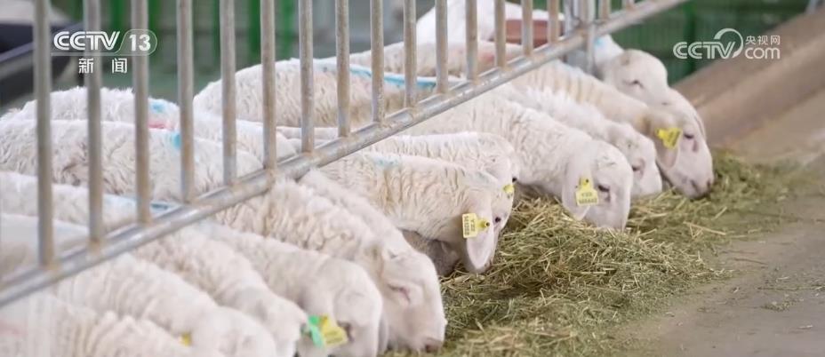 养殖基地技术人员介绍,这里养殖的澳湖羊具有多胎多羔、生长速度快、产肉率高的特点。在肉羊生长的不同阶段,饲料的精准投喂也非常重要。为了让这些羊能够吃得好、吃得饱,基地还专门建立了“饲喂厨房”,配备了自动化的饲料加工设备,从各种饲料投放到混合搅拌再到出料和撒料,每一步都能够机械化完成,从而进一步让饲料能够精准投放,达到节省人工成本和降低管理难度的目的。