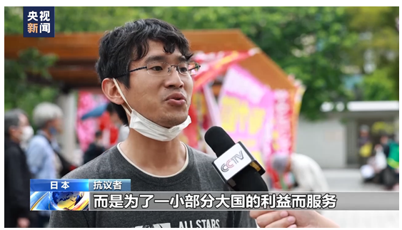 日本抗议者表示:“G7峰会只服务于少数西方大国利益,这样的峰会我无法苟同。”