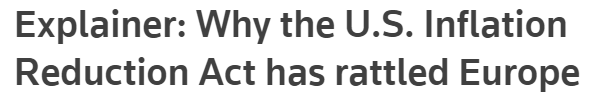 路透社:美国的《通胀削减法案》让欧洲感到不安