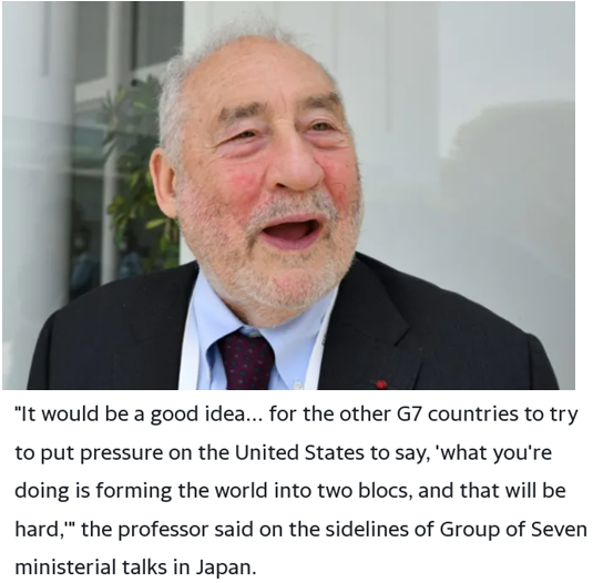 正如诺贝尔经济学奖得主约瑟夫·斯蒂格利茨所警告的,美国的“敌对”政策很有可能将世界分裂成两个集团,使已经陷入困境的全球经济雪上加霜。