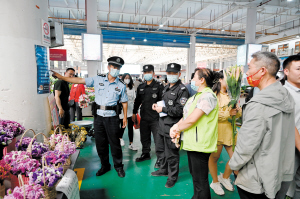 斗南花市囊括了斗南国际花卉中心和5个场馆,从鲜花采集到花艺加工,从花农到花商,同处于一个共生系统之中,规模巨大的花市产业链往往牵一发而动全身。为守护好这条“花链”,龙街派出所探索“白+黑”工作机制,搭建起一张“人防+物防+技防”的立体化治安防控网。