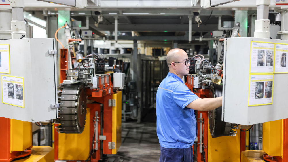 工作人员在贵州轮胎股份有限公司的“5G全连接工厂”成型区作业(2022年5月17日摄)。新华社记者 欧东衢 摄