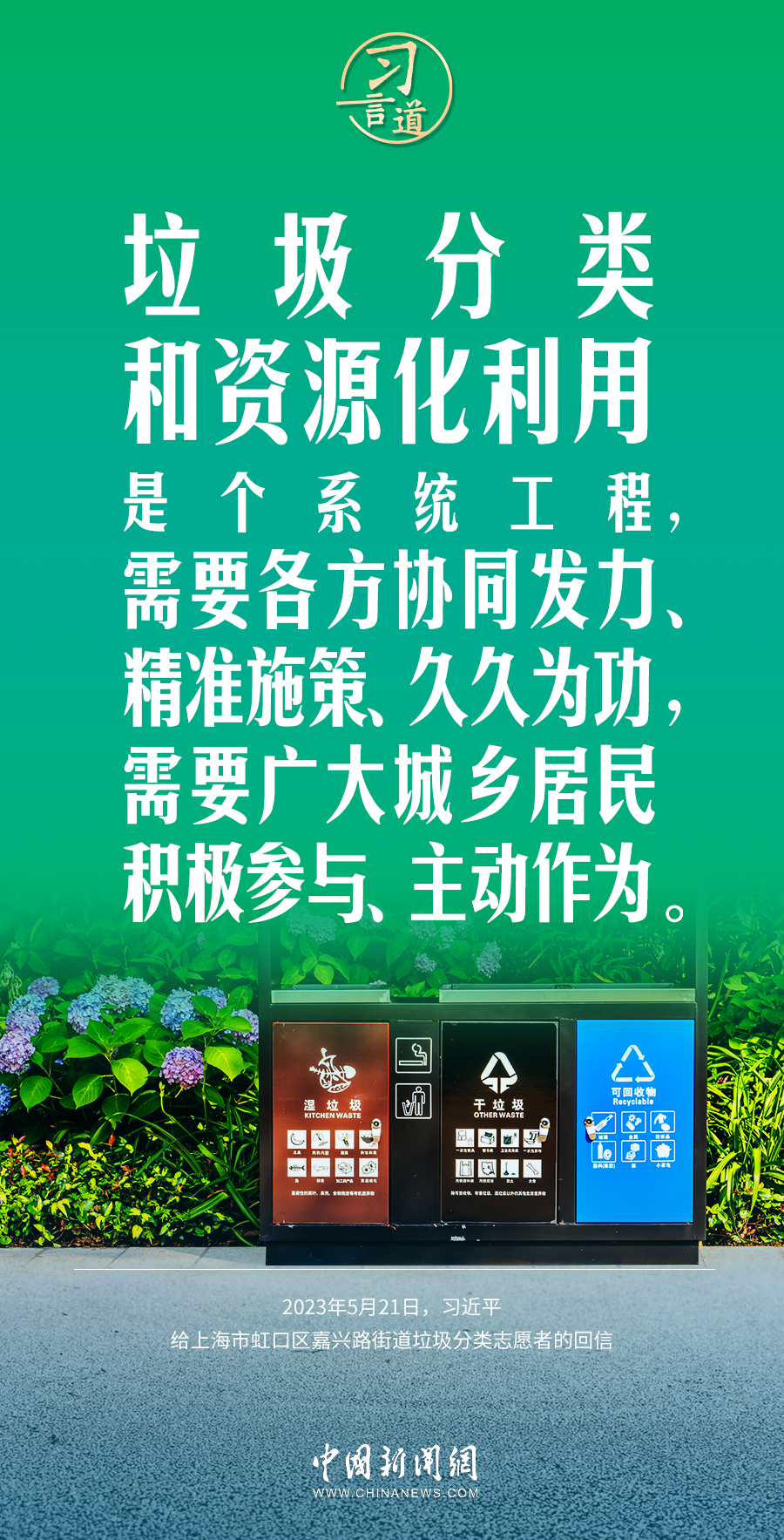 习近平总书记十分关注垃圾分类和资源化利用,多次作出重要论述。