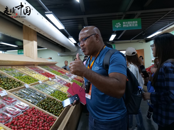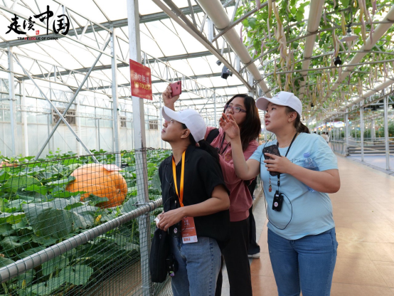 记者们也开启了“代言”模式,不仅自己拍摄着各种“神奇蔬菜”,准备向各自国家的观众介绍,还跟现场正在直播的中国朋友一起凑热闹,用他们的语言夸赞着中国蔬菜。
