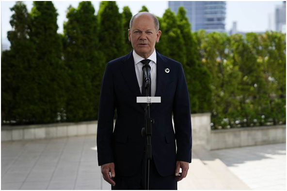 德国总理奥拉夫·朔尔茨在日本广岛举行的七国集团领导人峰会上。图自彭博社