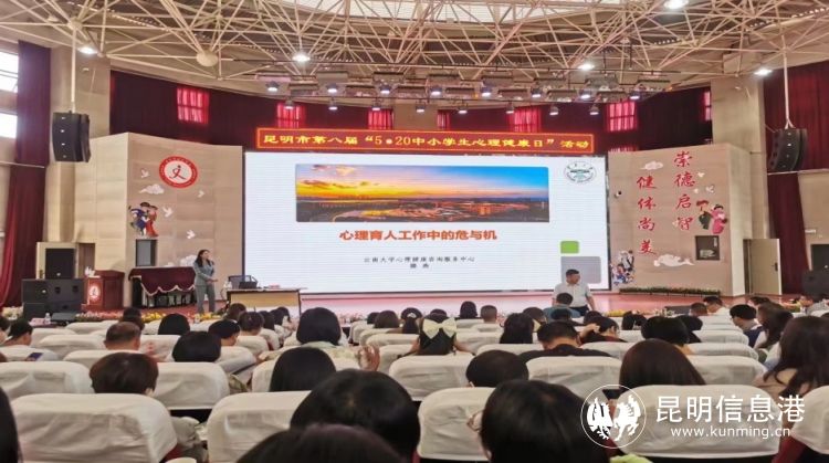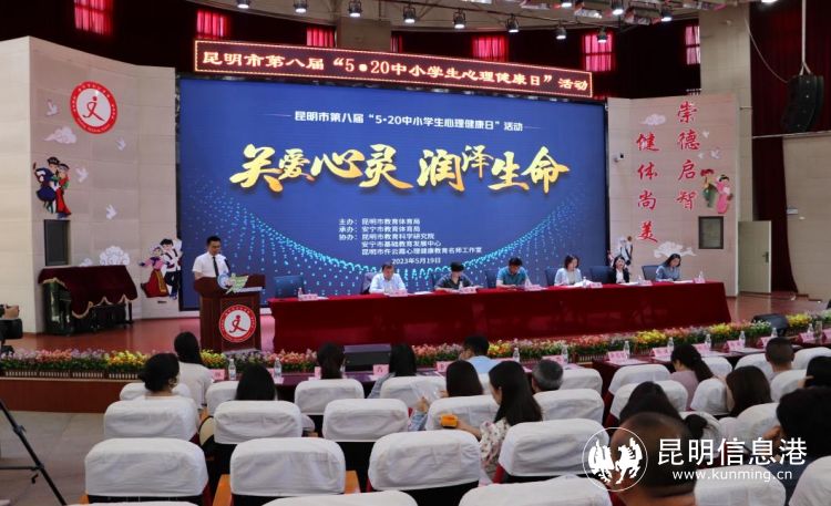 昆明信息港讯 记者上官艳君 近日,昆明市第八届“5·20中小学生心理健康日”主场活动在云南省安宁市石江学校举行。昆明市各县(市)区教育体育局相关负责人、各中小学校长、心理健康教师等近300人齐聚一堂,聆听专家讲座、分享心理健康教育工作经验,昆明市未参加现场活动的中小学线上同步收看直播分享。