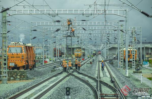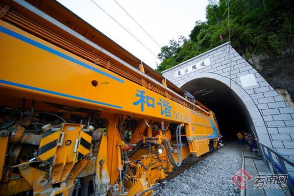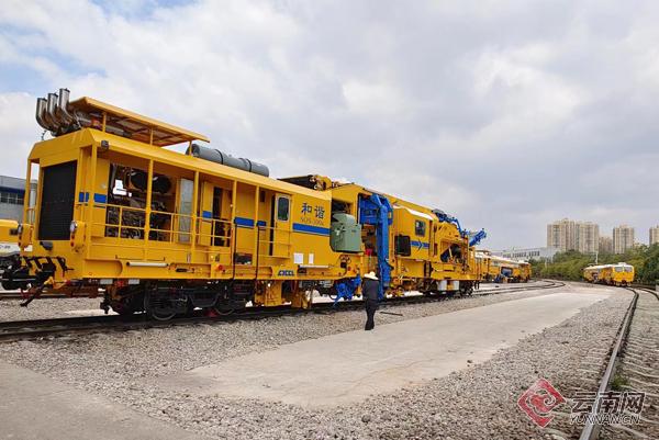 “变形金刚”通过捣固、稳定、配砟整形等在中老铁路国内磨憨段作业