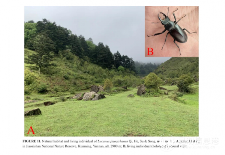 昆明信息港讯 记者段佳琪 通讯员赵昌佑 近日,云南师范大学生命科学学院杨士剑教授团队和保护区科研所工作人员在云南轿子山国家级自然保护区进行野外考察时,发现深山锹甲属一新种。经鉴定,相关成果由福建农林大学植物保护学院、福建省林业科学研究院和云南师范大学生命科学学院共同发表于2023年5月13日分类学期刊《Zootaxa》第二期上。