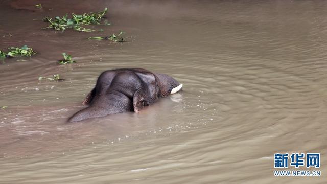 野象正在潜水(资料图)。新华网发(西双版纳野象谷供图)