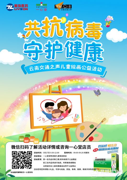昆明信息港讯 记者曹芸 由云南广播视电台FM91.8联合云南省妇女儿童发展基金会发起、一心堂药业集团和丽珠医药共同主办的“共抗病毒 守护健康”儿童公益绘画活动正在持续进行中,首站活动在安宁圆满成功,孩子们收获满满,家长好评如潮。